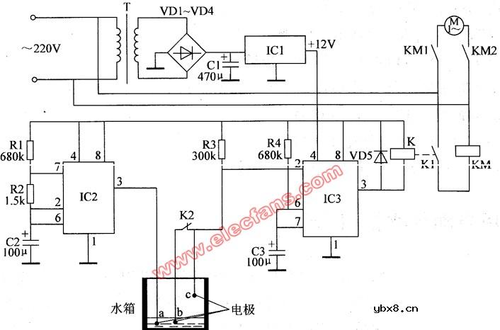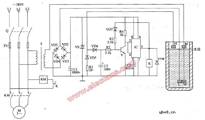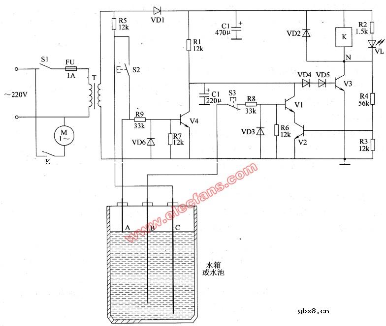 贮水池自动上水控制器电路图