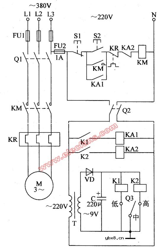 由三个接触器组成的电动机正反转控制电路图