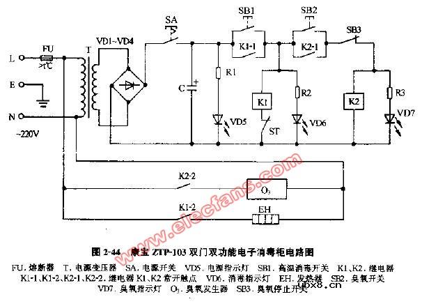 康宝ZTP-103双门双功能电子消毒柜电路图
