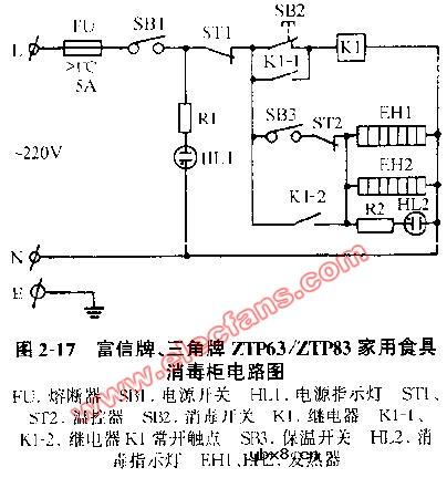 富信牌,三角牌ZTP63 ZTP83家用食具消毒柜电路图