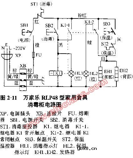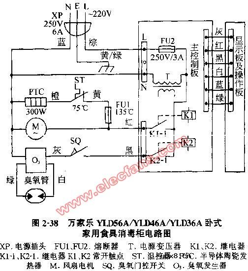 万家乐YLD56A YLD46A YLD36A卧式家用食具消毒柜电路图