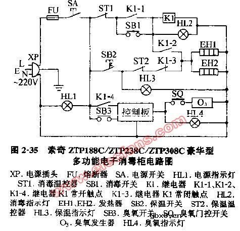 索奇ZTP-188C ZTP238C ZTP308C豪华型多功能电子消毒柜电路图