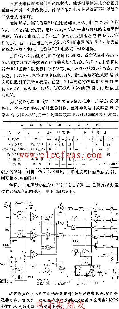 能显示五种状态的动态逻辑探头电路图