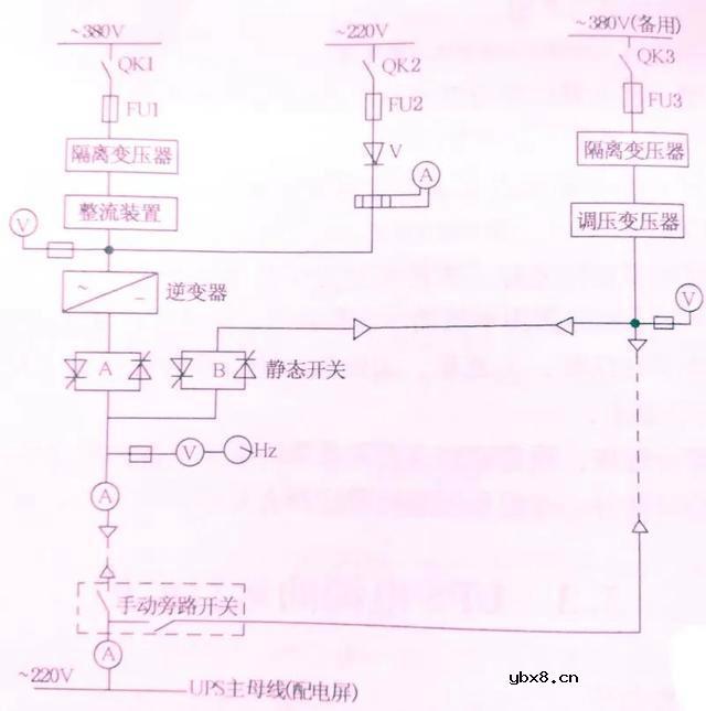 一、UPS电源的组成 1、作用和功能 UPS是交流不停电电源的简称。主要功能是在正常、异常和供电中断情况下,向重要用电设备及系统提供安全可靠、稳定不间断,不受倒闸操作影响的交流电源。