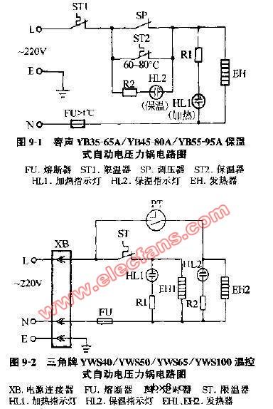 三角牌YWS40 YWS50温控式自动电压力锅电路图