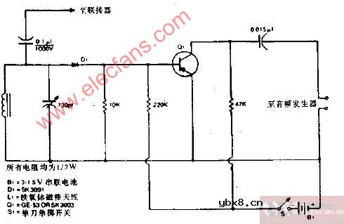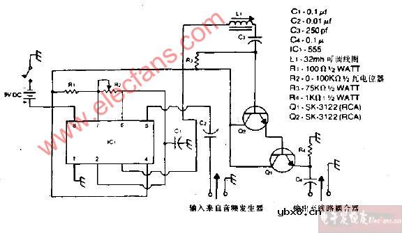 具有开关载波调制器的200kHz有限载波发射机电路图