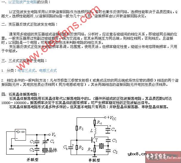 LC正弦波发生电路:变压器反馈正弦波发生电路,三点式正弦波产生电路。