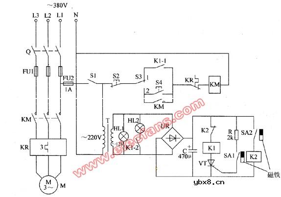 无塔供水电路图 农村的供水系统普遍采用无塔增压式供水控制装置,这种供水控制装置的缺点是电接点压力计的控制触点容易烧蚀,造成水压失控。本例介绍的农用无塔增压式供水器,控制电路采用12V直流电压供电,流经压