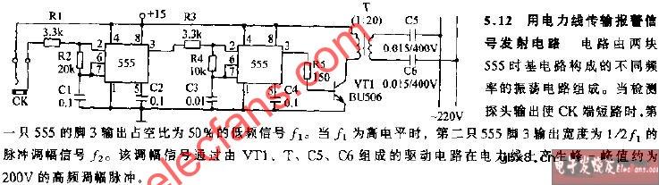用电力线传输报警信号发射电路