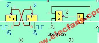 基本RS触发器电路图 基本RS触发器是由两个与非门,按正反馈方式闭合而成,也可以用两个或非门按正反馈方式闭合而成。图(a)是习惯画法,图(b)是另外一种画法。基本RS触发器也称为闩锁(Latch)触发器。