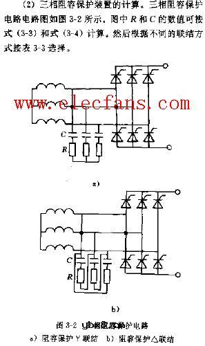 三相阻容保护电路图 a 阻容保护Y联结 b 阻容保护三角形联结