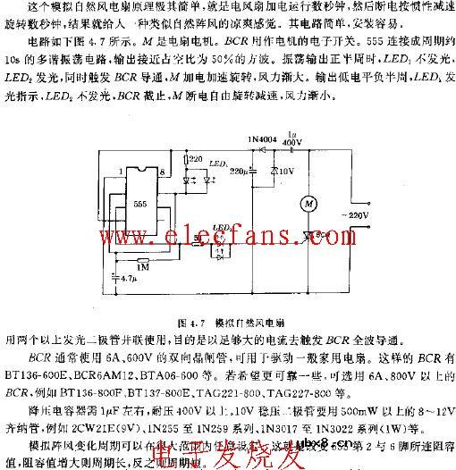 555模拟自然风电扇电路图