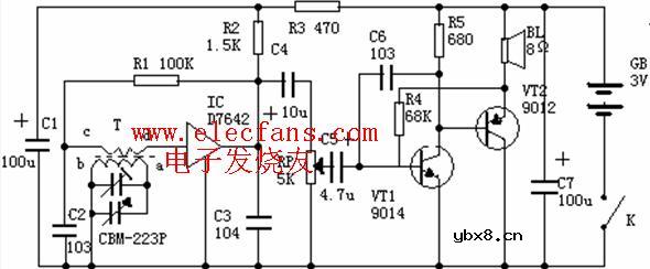 单管直放式收音机原理图