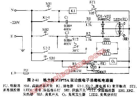 格力牌ZTP75A双功能电子消毒柜电路图