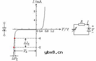 稳压(齐纳)二极管,稳压(齐纳)二极管原理/参数/检测 稳压二极管是应用在反向击穿区的特殊的面接触型硅晶体二极管。稳压二极管的伏安特性曲线与硅二极管的伏安特性曲线完全一样,稳压二极管伏安特性曲线的反向区、符