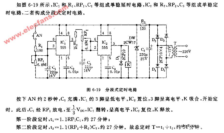 分段式定时电路图 由时基芯片NE555组成.