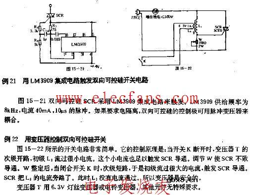 用LM3909集成电路触发双向可控硅开关电路