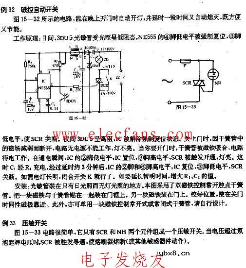 磁控自动开关电路图:能在晚上开门时自动开灯,并延时一段时间又自动熄灭,即方便又节能。