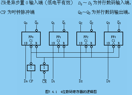 寄存器培训教程 7.4.1 寄存器1.定义2.电路举例 3.逻辑功能分析7.4.2 移位寄存器一、单向移位寄存器㈠ 由4个维持阻塞D触发器组成4位右移位寄存器。1.逻辑电路: 2.工作原理3.右移位寄存器的状态表㈡ 4位左移